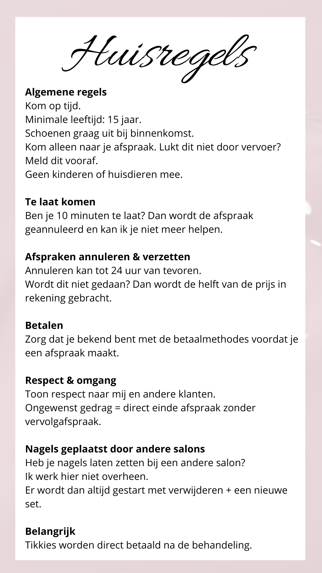 De duur hangt af van de behandeling en je dagelijkse activiteiten. Over het algemeen blijven acrylnagels & biab 2 tot 4 weken mooi, afhankelijk van de groei van uw natuurlijke nagels.